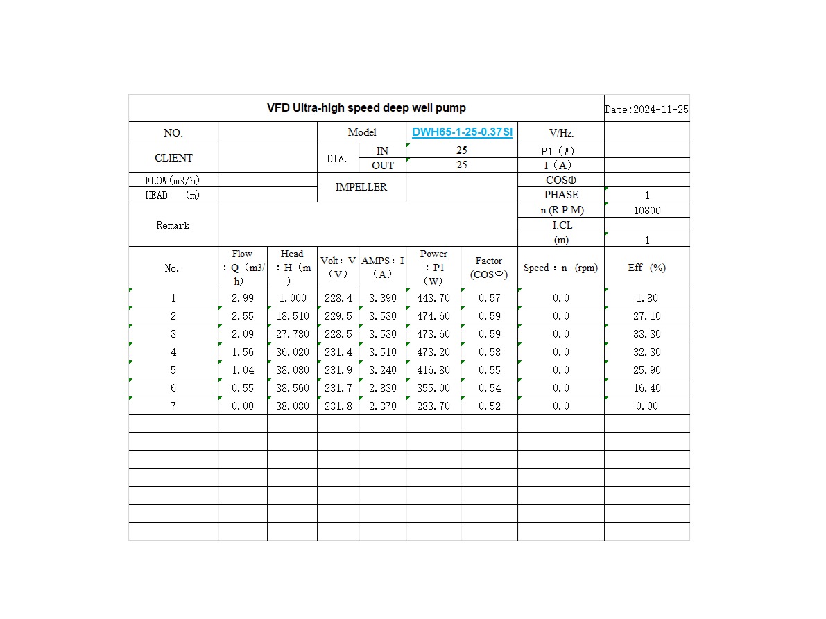 The borehole pump __ DWH65-1-25-0.37SI _______ is designed to pump clean liquids that do not contain solid particles or fibers. It is used to supply groundwater to water supply systems of private houses, small water supply stations, and irrigation systems.